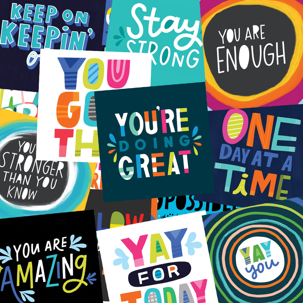Let's SHARE SOME KINDNESS! This set of encouragement cards features uplifting artwork to cheer people on. We rise by lifting others, so pass out some encouragement to people in your life who need it or keep some for yourself.