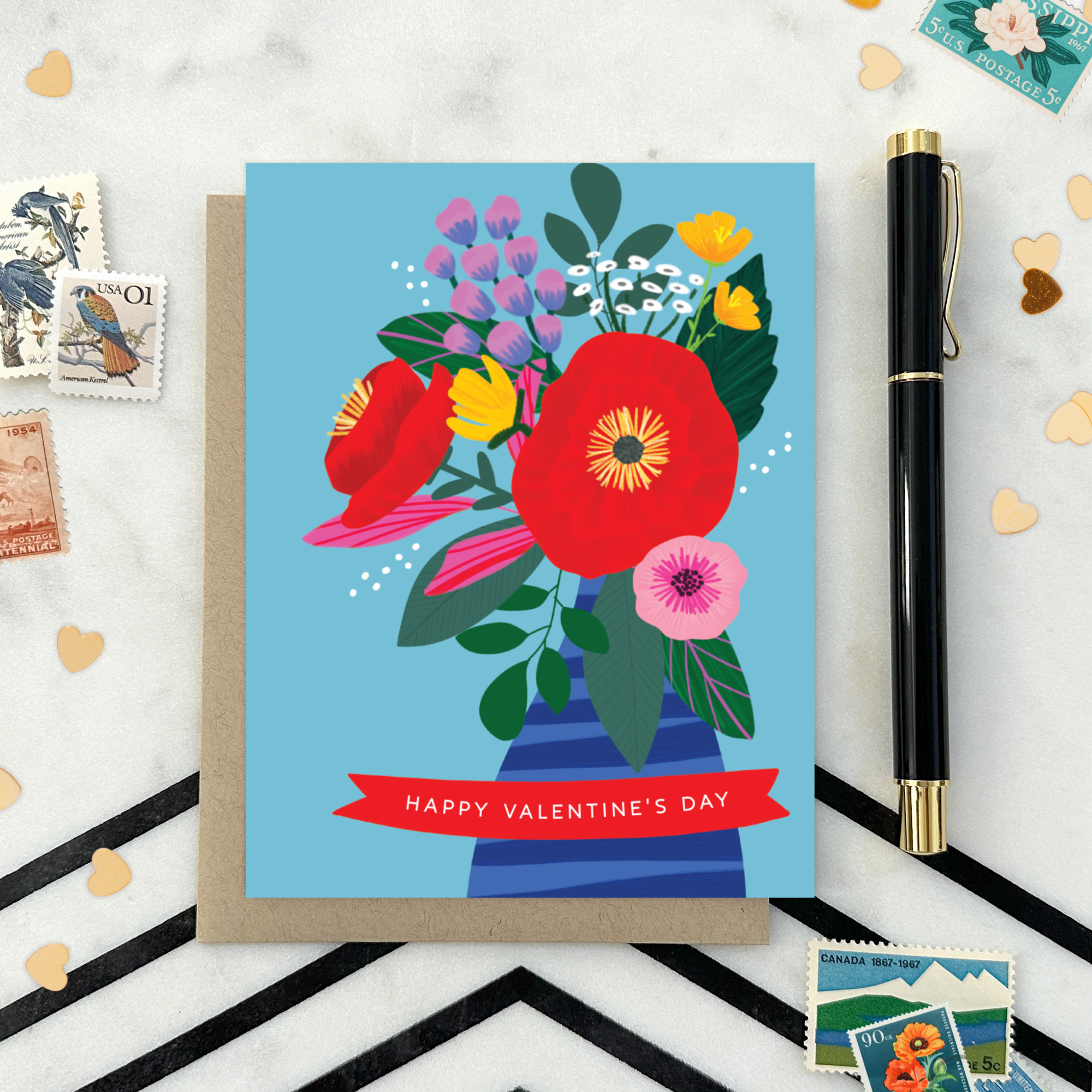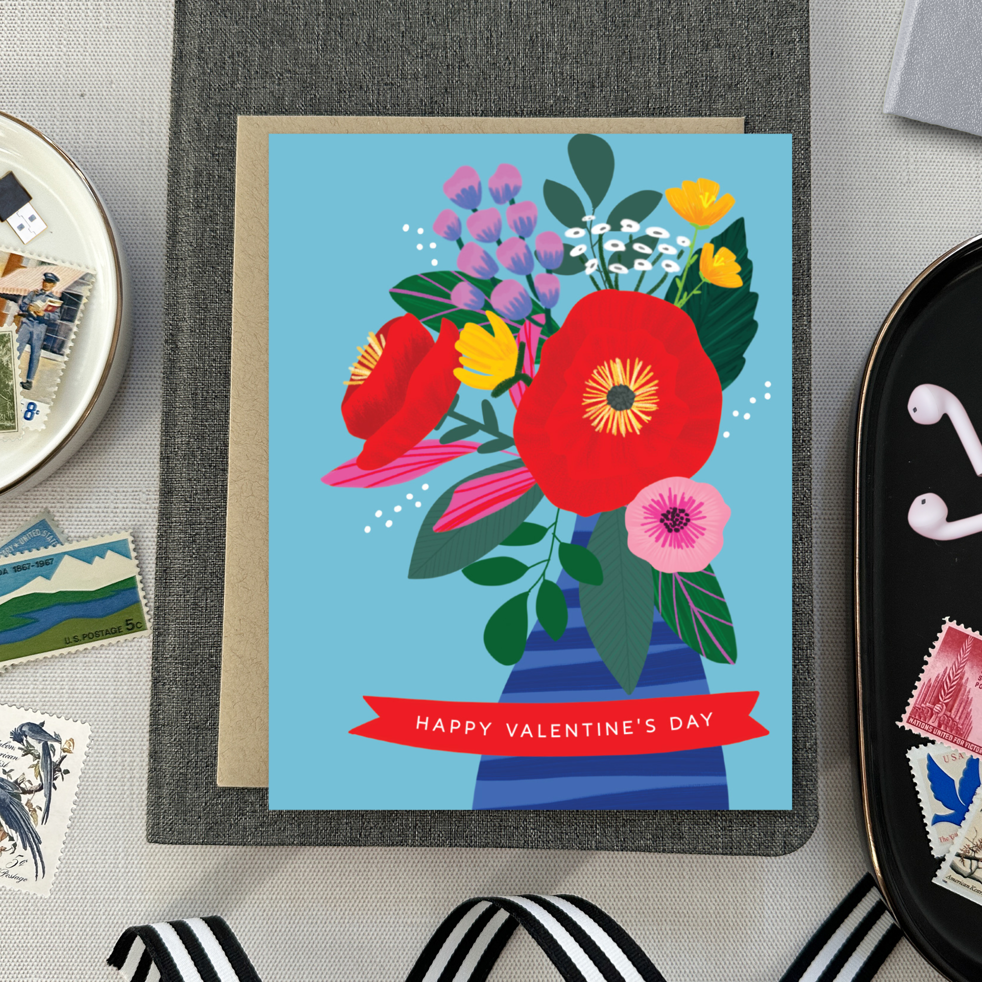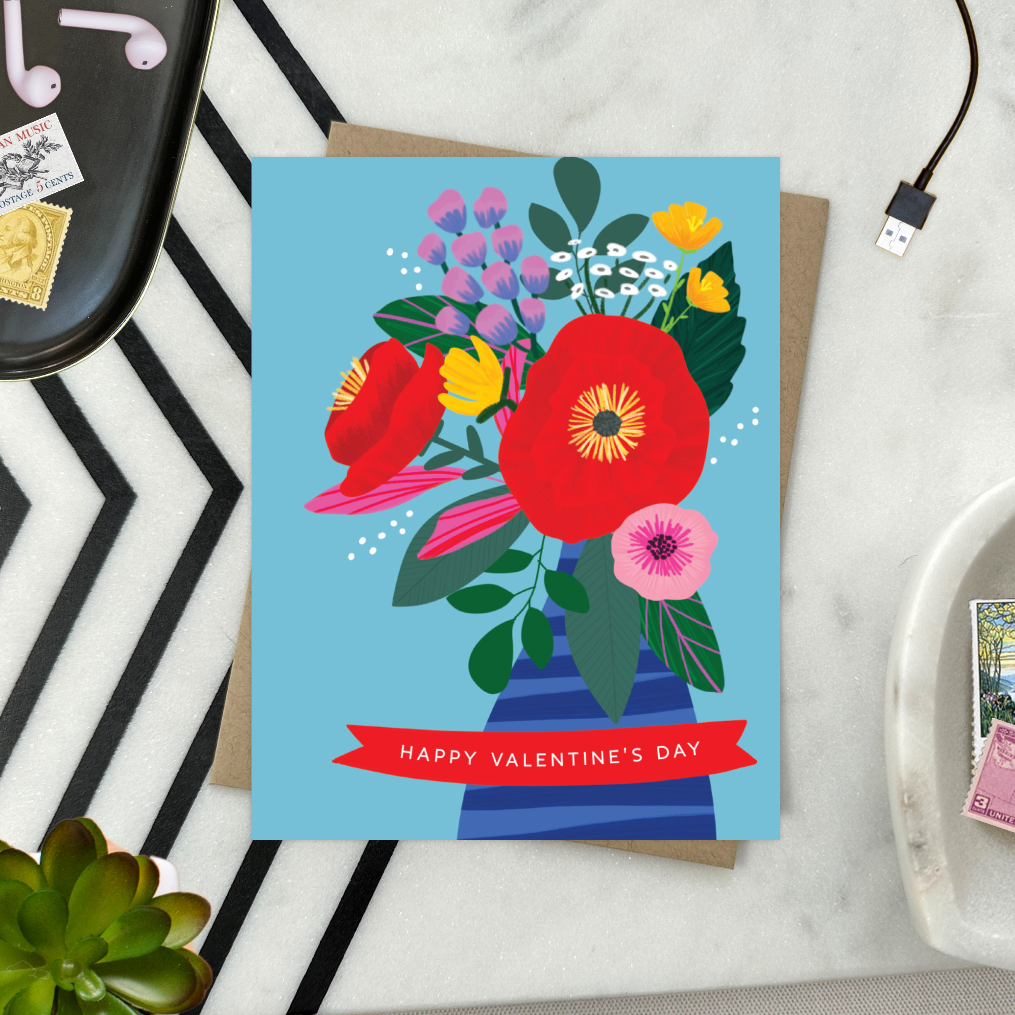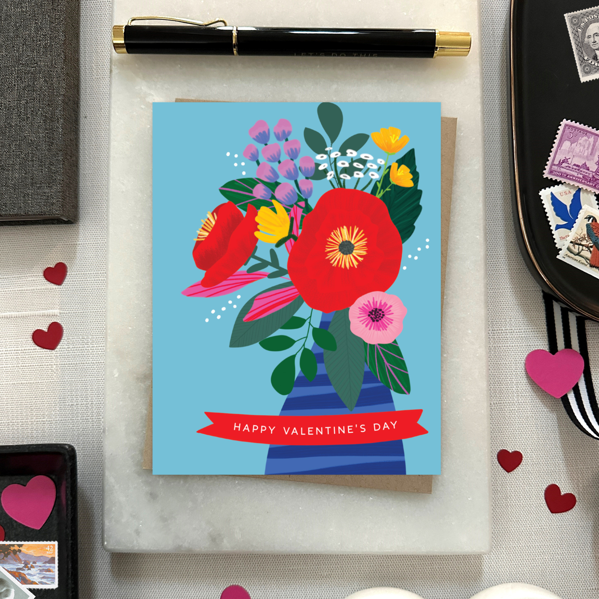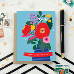 Spread love like wildflowers with this vibrant and modern floral Valentine’s Day card! Featuring illustrated, colorful blooms against a bright blue background, this playful design offers a fresh take on classic Valentine’s greetings. With the words “Happy Valentine’s Day,” this card is perfect for anyone looking for non-traditional Valentine’s Day cards, floral greeting cards, or a unique way to share love and appreciation.